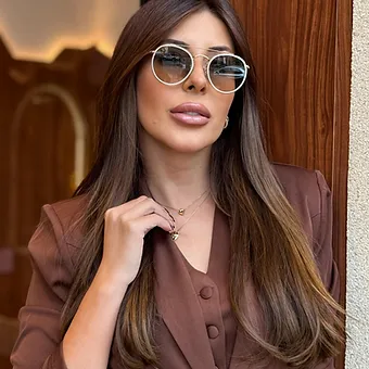 Óculos de Sol Ray Ban Round Double Bridge metal dourado, lentes cinza-claro degradê. Perfeito para quem busca modernidade e autenticidade.