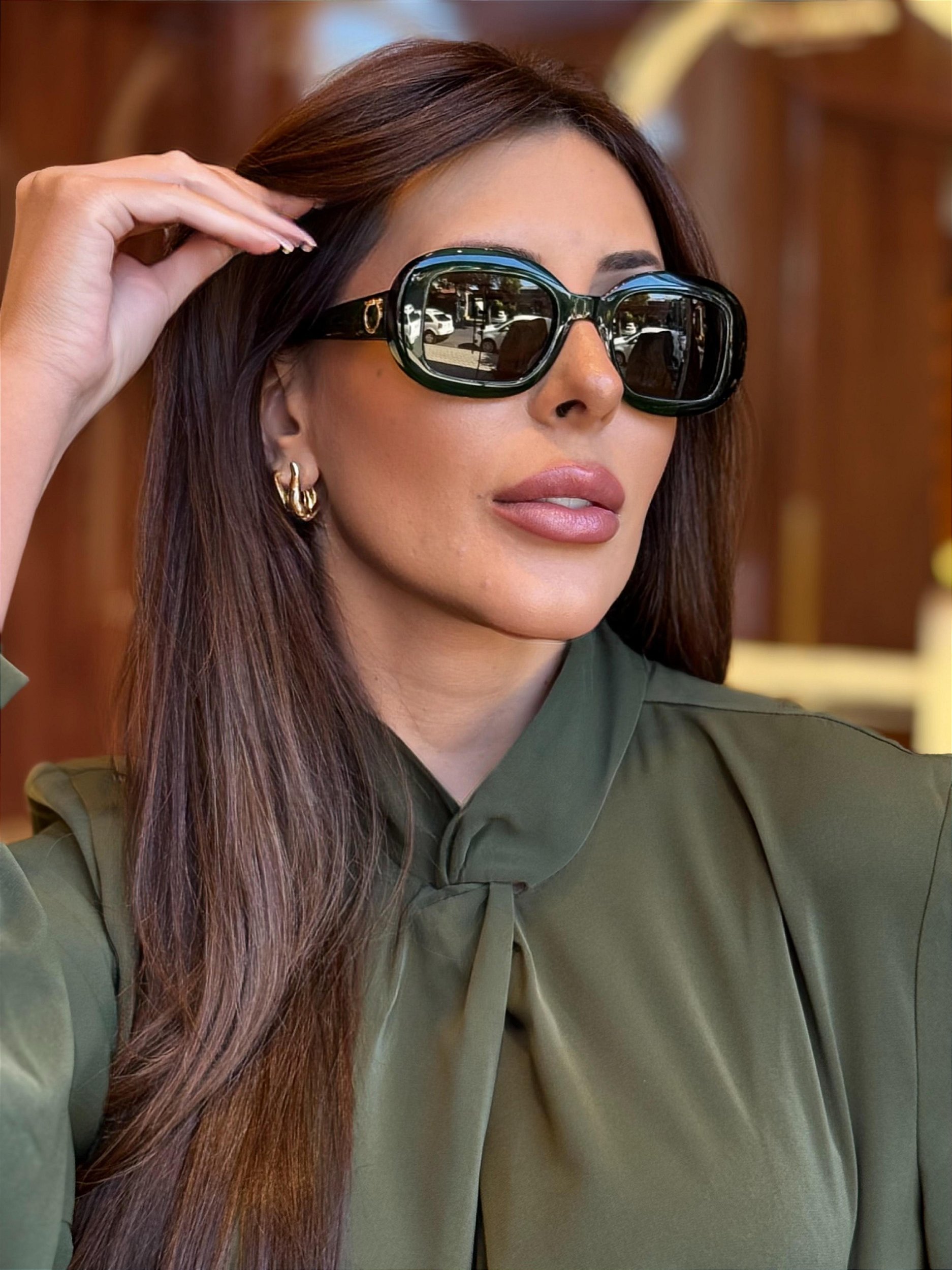 Óculos de sol com armação em acetato na cor verde. As lentes cinza garantem proteção contra os raios UV, ajudando a reduzir o brilho e proporcionando conforto visual. O formato retangular com cantos arredondados é versátil e combina com vários estilos. Na lateral, o detalhe metálico com o logo Salvatore Ferragamo traz um toque de autenticidade.